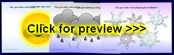 A set of playdough mats with a weather theme. Pupils are encouraged make playdough raindrops, snowflakes, rays for the sun, a rainbow shape and more.