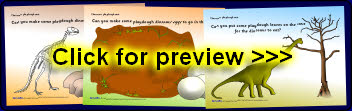 A set of 5 printable tabletop mats where children are encouraged to make various dinosaur-related items from playdough.