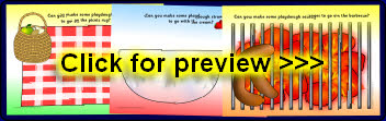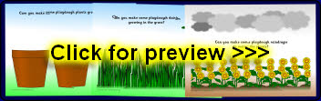 A set of 6 printable tabletop mats where children are encouraged to make various plant-related items from playdough.