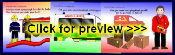 A set of 8 playdough mats linked to people who help us. Children can make a hose for the firefighters, wheels for the ambulance, parcels for the postman and more.