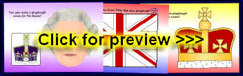 A set of playdough mats where pupils make items related to the Diamond Jubilee: a crown for The Queen, Union Flags and jewels for the crowns.