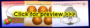 A set of printable playdough mats linked to Easter. Children make Easter eggs, crosses for the buns, ears for the bunny and more.