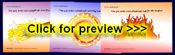 A set of 4 simple printable playdough mats where children can create playdough stars, sparks, Catherine wheels and logs for the bonfire.