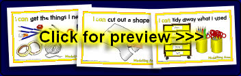 A useful and colourful group of signs with ‘I can...’ statements for use in your modelling area. Includes ‘I can get the things I need’, ‘I can cut out a shape’, ‘I can write my name on my work’, ‘I can tidy away what I used’ and more.