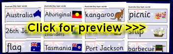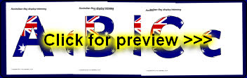 A PDF document with 26 Australian flag-themed alphabet letters (upper and lowercase). These are great for printing and cutting out for use on displays.