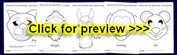 A great set of black and white printable masks featuring the 12 animals of the Chinese Zodiac. Useful for retelling the Chinese New Year story. Simply print out, colour, laminate, cut out and attach to lollipop sticks.