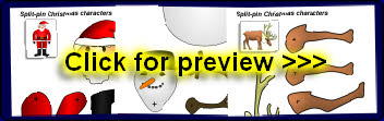 A set of printable outline body parts which can be coloured by pupils and assembled into Santa, a snowman, or reindeer using split-pins.