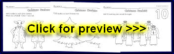Simple worksheets where children add Christmas items. Numbers 1-10.