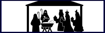 Lined A4 pages with 5 different silhouettes depicting parts of the Christmas story, plain lined page and additional manger page.