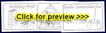 A set of simple colouring sheets featuring various modern-day toys.