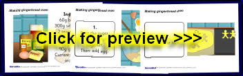 A useful set of simple visual aids showing how to make Gingerbread Men in 9 steps. It includes instructional text and a list of ingredients. Perfect for use in a classroom display.