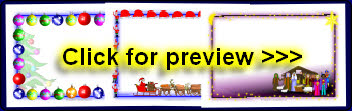 An additional colourful set of 5 printable landscape borders linked to Christmas. Download is a ZIP which includes Microsoft Word templates together with resizable JPG background images.