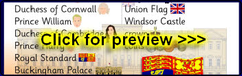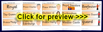 Printable word and picture cards linked to the Royal Family.