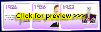 A set of printable posters showing important events in the Queen’s life.
