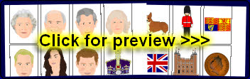 A set of 16 printable picture cards featuring images linked to the Royal Family. Ideal for flash card games such as snap.