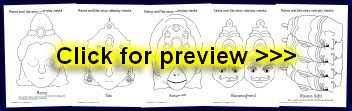 A fun set of black and white role-play masks for telling the Hindu story of ‘Rama and Sita’.