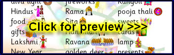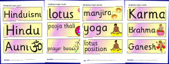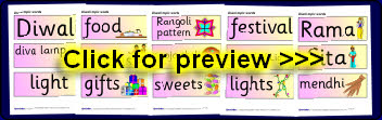 A useful printable set of word cards, some with pictures, linked to the Hindu festival of Diwali. These are great as topic discussion aids or for use in a topic word bank. They would also look great as labels on a classroom topic display.