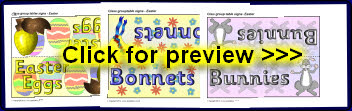 A set of 50 printable colourful Easter egg pictures with phonemes as specified in the DfES ‘Letters and Sounds’ document. Great if laminated for outdoor Easter egg hunts and children could build words using the eggs. Also good for use on classroom displays.
