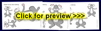 Cut-out Easter bunny images of different sizes for children to order and compare.