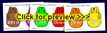 A set of colourful printable rabbit footprints featuring the number-words from zero to thirty.