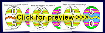 Print and cut out for a simple activity where children match the two halves of each Easter egg to make number bonds that make 5.