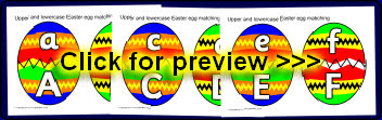 An activity where children match together the upper and lowercase alphabet letters on Easter egg halves.