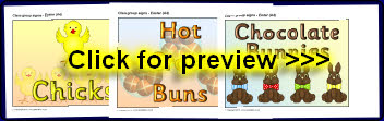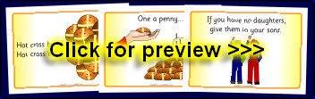 A set of A4 visual aids to accompany the Easter rhyme ‘Hot Cross Buns’.