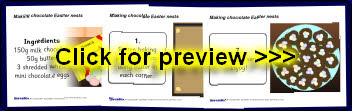 A simple cut-and-stick activity where children order the pictures showing how to make chocolate Easter nests.