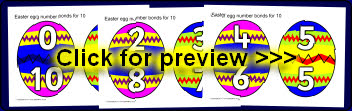 Print and cut out for a simple activity where children match the two halves of each Easter egg to make number bonds that make 10.