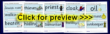 A set of printable word and picture cards linked to the parable of The Good Samaritan.