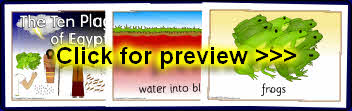 A set printable visual aids for retelling and discussing the Old Testament recount of Moses and the Ten Plagues of Egypt.