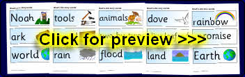 A set of printable word and picture cards linked to the Biblical story of Noah’s Ark.