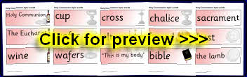 A set of word and picture cards linked to Holy Communion/The Lord’s Supper.