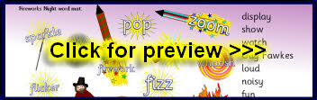 An A4 printable word mat featuring words linked to fireworks night. Ideal for use if writing fireworks poems or other descriptive texts.