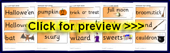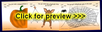 A set of printable playdough mats linked to Halloween. Children make a face on the pumpkin, wings for the bat, a hat for the witch and more.