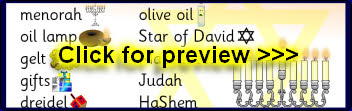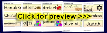 A set of word and picture cards linked to the Jewish festival of Hanukkah.
