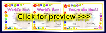 Printable certificates for children to present to their mum or guardian on Mother’s Day. Children fill in ‘presented to... mum’, the date and their name.