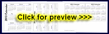 Simple printable 2013 calendars with a year to view. Three different sizes included. Great for use on pupil’s art and craft calendars.