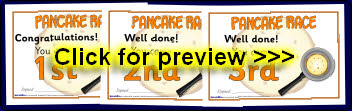 Certificates for 1st, 2nd, 3rd and 4th positions in your pancake race.