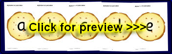 The lowercase alphabet letters presented on pancake images - one per A4 sheet.