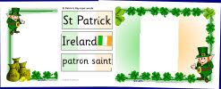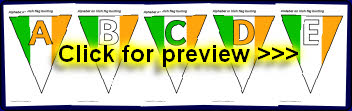 A PDF document with 26 alphabet letters (upper and lowercase) coloured like the Irish flag. These are great for printing and cutting out for use on displays.