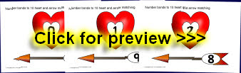 A printable activity where pupils match the arrows to the hearts to make number bonds to 10.