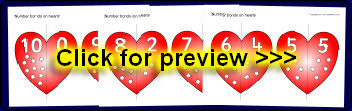 A set of printable hearts that can be cut in half to create a number bond matching game. Children match the halves of each heart together to make totals to 10.