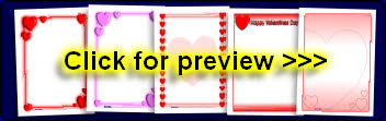 A useful set of 5 different Valentine's-themed page borders. The download is a ZIP containing Microsoft Word templates together with resizable JPG background images.