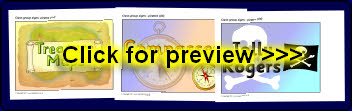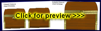 A set of coloured templates for Microsoft Word that allow you to add text to pirate treasure chests.