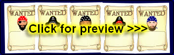 Printable wanted poster writing frames with a pirate theme. Children can write descriptions of pirates and what reward can be claimed.