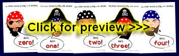 A set of display posters/cut-outs featuring pirates saying the number words from zero up to fifty.