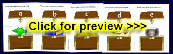 A simple printable activity where children match the initial sounds on the treasure chest lids to the item inside the chests. Includes alphabet sounds a-z plus ch, sh and th.