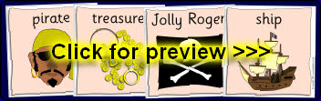 A set of word and picture cards linked to a topic on ‘Pirates’. Great for use in classroom displays, story writing or word banks.