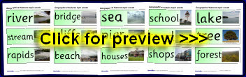 A set of printable word and photo cards with natural and manmade geographical features.